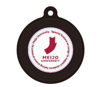 NFC(近距離無線通信)技術を利用して、スマートフォンにかざすだけでお気に入りの音楽(楽曲やプレイリスト)を再生できるキーホルダー。名城大学の新ロゴマークがあしらわれたデザイン。