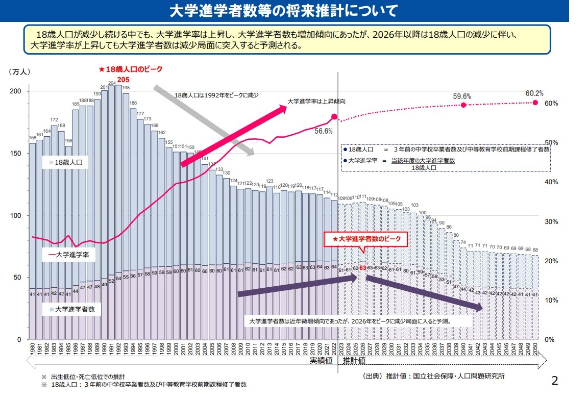 【少子化の影響18歳人口は長期縮小、大学経営の“地域差”】