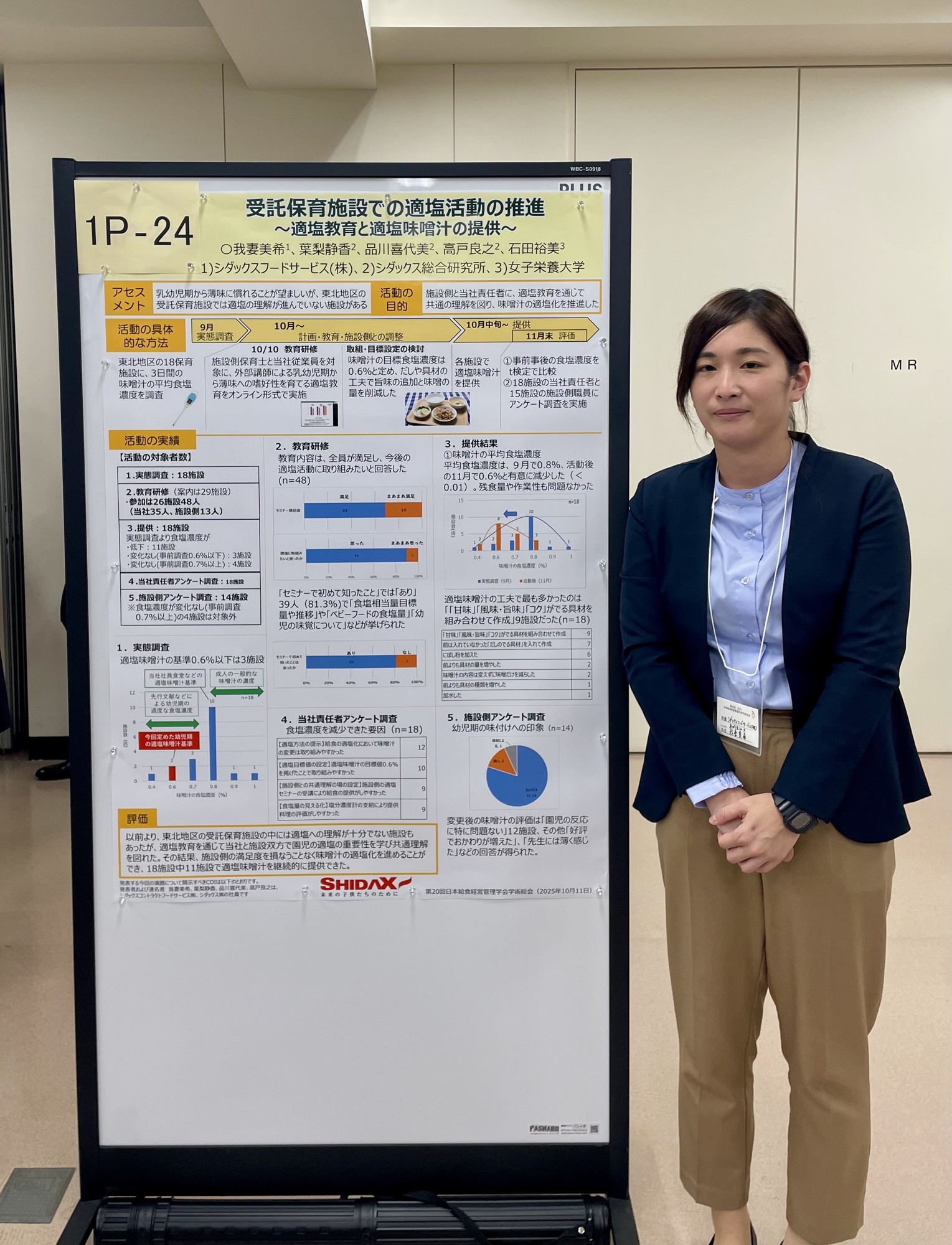 2025年10月、女子栄養大学で開催された「第20回日本給食経営管理学会学術総会」において、当社管理栄養士による発表「受託保育施設での適塩活動の推進~適塩教育と適塩味噌汁の提供~」が、活動報告発表部門「優秀演題賞」を受賞しました。