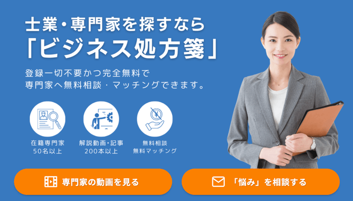 中小企業経営者のお悩みに、最適な分野の専門家が解決!