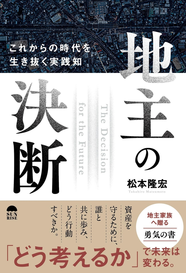 サンライズパブリッシング株式会社(所在地:東京都渋谷区、代表取締役:西潟 洸徳、以下 サンライズパブリッシング)は、ライフマネジメント株式会社 松本 隆宏代表による著書『地主の決断 これからの時代を生き抜く実践知』を2023年7月29日に発売いたします。