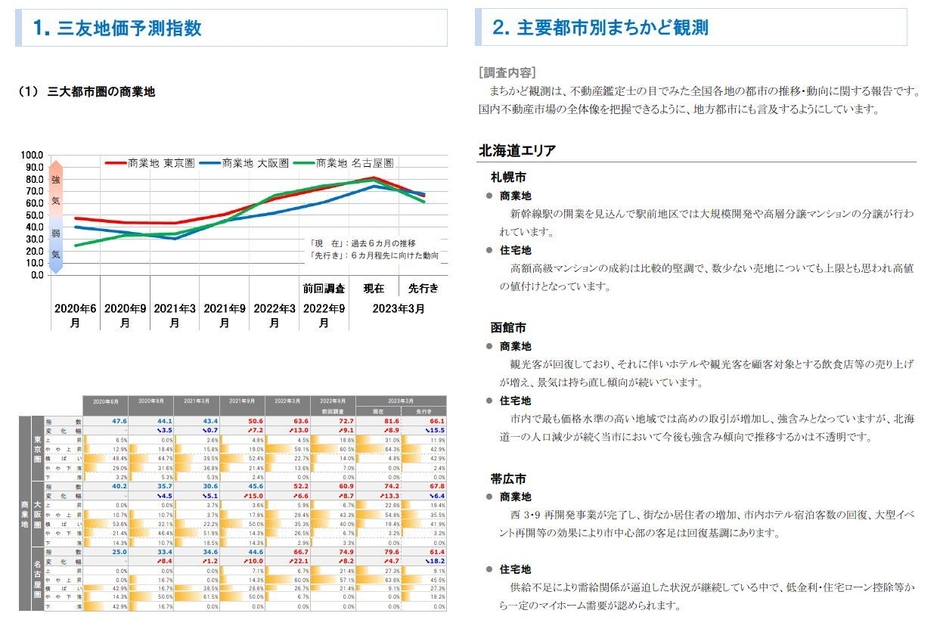 三友地価予測指数(2023年3月調査)を発表 不動産鑑定士の 目で見た不動産市場の動向に関する定性的な報告も同時発表