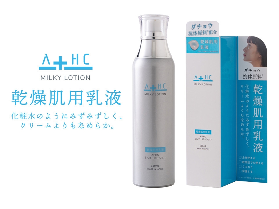 「APHC ミルキーローション」は、ダチョウ抗体(※)により皮膚本来が有する力を引き出すことができ、トラブルのない肌へサポートする高機能保湿乳液です。