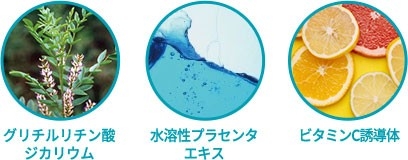 ニキビや肌あれに悩む方に。有効成分のグリチルリチン酸ジカリウムと水溶性プラセンタエキスがニキビ・肌あれを防ぎ、みずみずしい肌へと導きます。