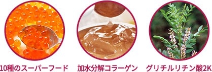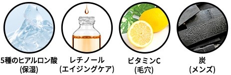 金・銀・プラチナ・パールに加え、エイジングケア※ 成分のフラーレンやレチノール、高い保湿力を誇るプロテオグリカンや2種のコラーゲンなどを配合。