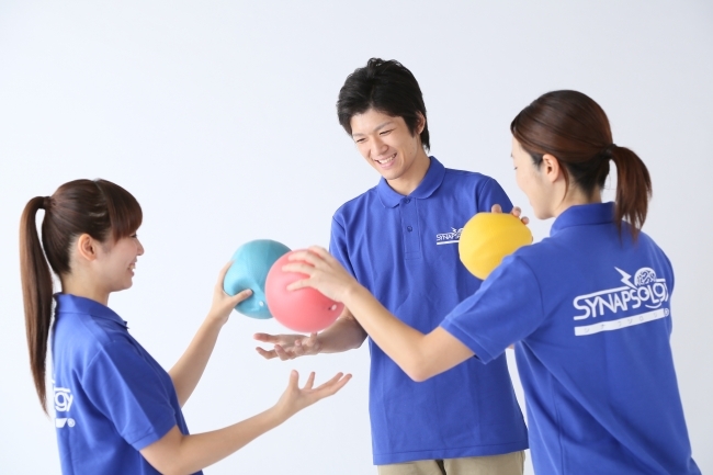 「シナプソロジー」は、じゃんけん、ボール回しといった基本的な動作に対して、感覚器(五感)を通じて入る刺激や、認知機能に対する刺激を変化させ続け(スパイスアップ)、その刺激に対して反応する事で、脳を活性化させていくメソッドです。できること(習得)を目的とせず、できないことに対応する状態を作り出すことで脳機能の向上を図ります。