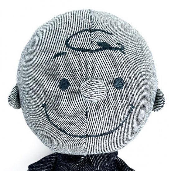 デニム感がありながら、しっかりと厚みもあるぬいぐるみです。のっぺりとしていないのがポイント♪洋服と靴はEDWINらしい濃いめのデニムカラー、お顔や手は薄いデニムカラーで表現されています。