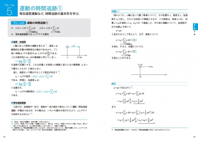 本書の役割は、①の段階でいったん学んだ断片的な知識を、②の段階で使いやすいように整理・体系化することです。例えば、運動の時間追跡(位置や速度を時刻の関数として求める)という観点では、等加速度運動と単振動はまとめて扱われるべきで、本書はそのように思考パターンに忠実に扱っています(しかし、高校等での普段の学習