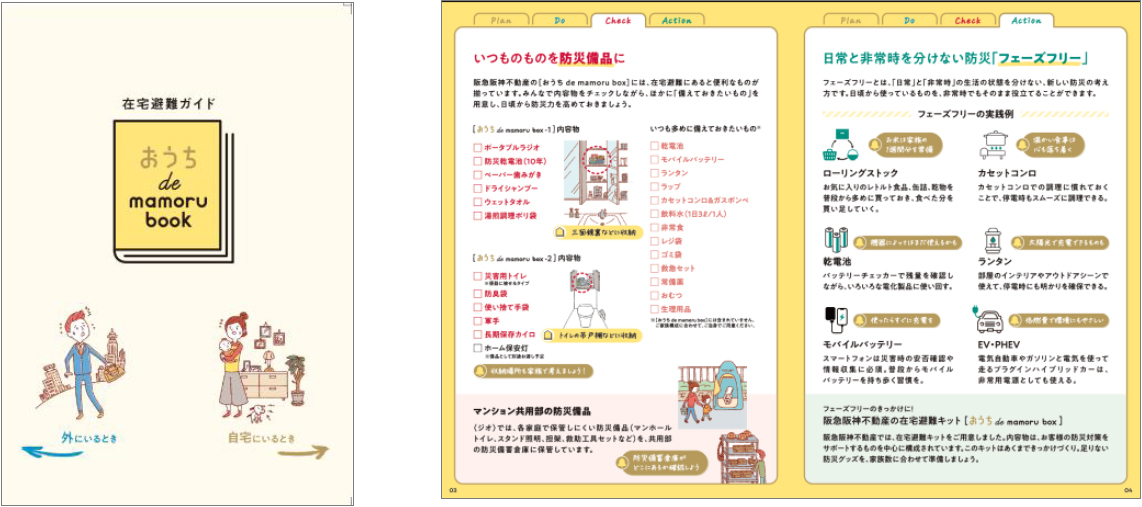 NPO日本防災士機構認定防災士 釜石徹 氏の監修のもと、在宅避難に関するガイドブックを作成しました。安心・安全な部屋づくりのポイントやフェーズフリーを意識した暮らしなど、在宅避難のためのアイデアを記載しています。