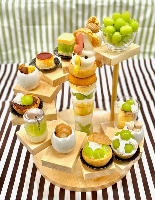 アフタヌーンティーセットから着想を得たフルアーマーVerですが、シャインマスカットをたまごの樹のお菓子とともに味わっていただくべく、試行錯誤していくうちにとてもボリューミーに!