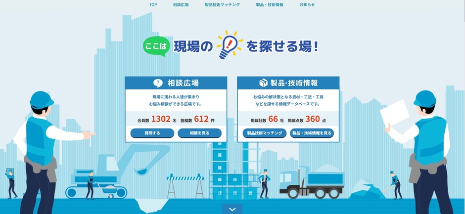Q&Aタイプのコミュニティサービスです。全国の利用者が互いに、サイト上で質問や回答を投稿できます。土木に関する多くの情報が集まることで、悩みの解決に貢献します。