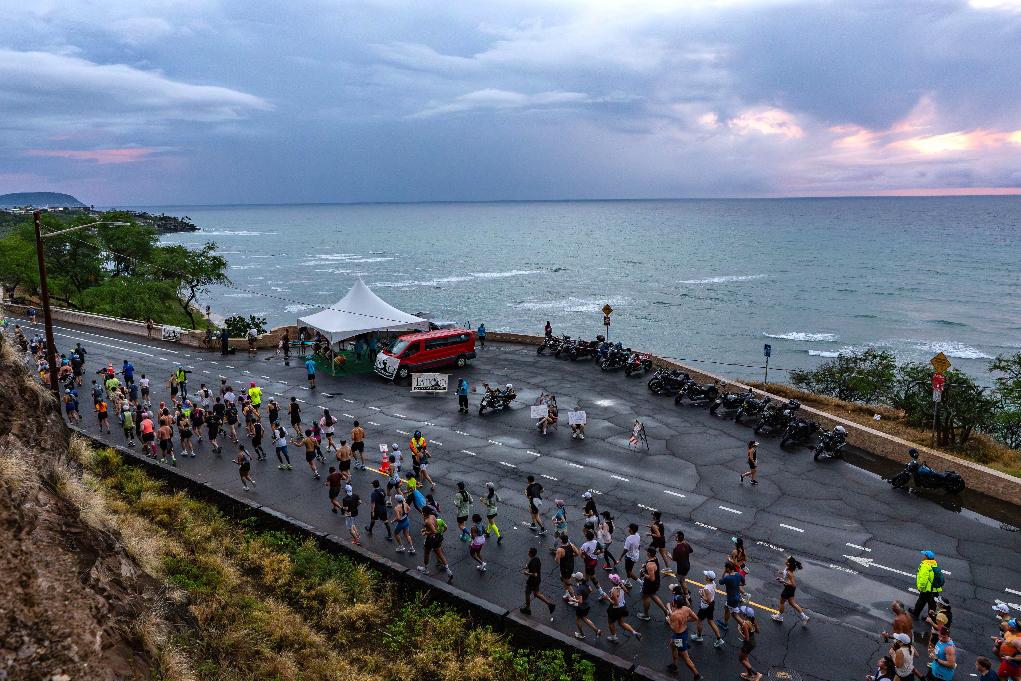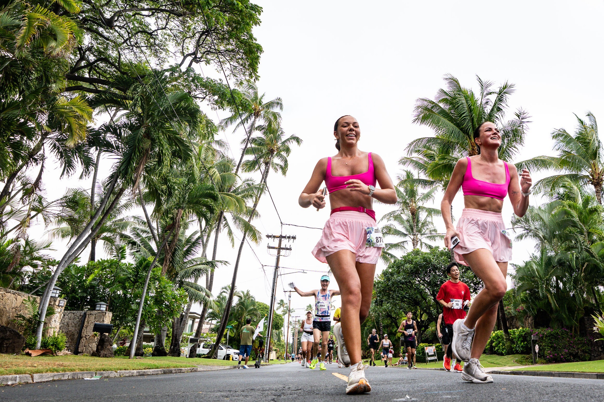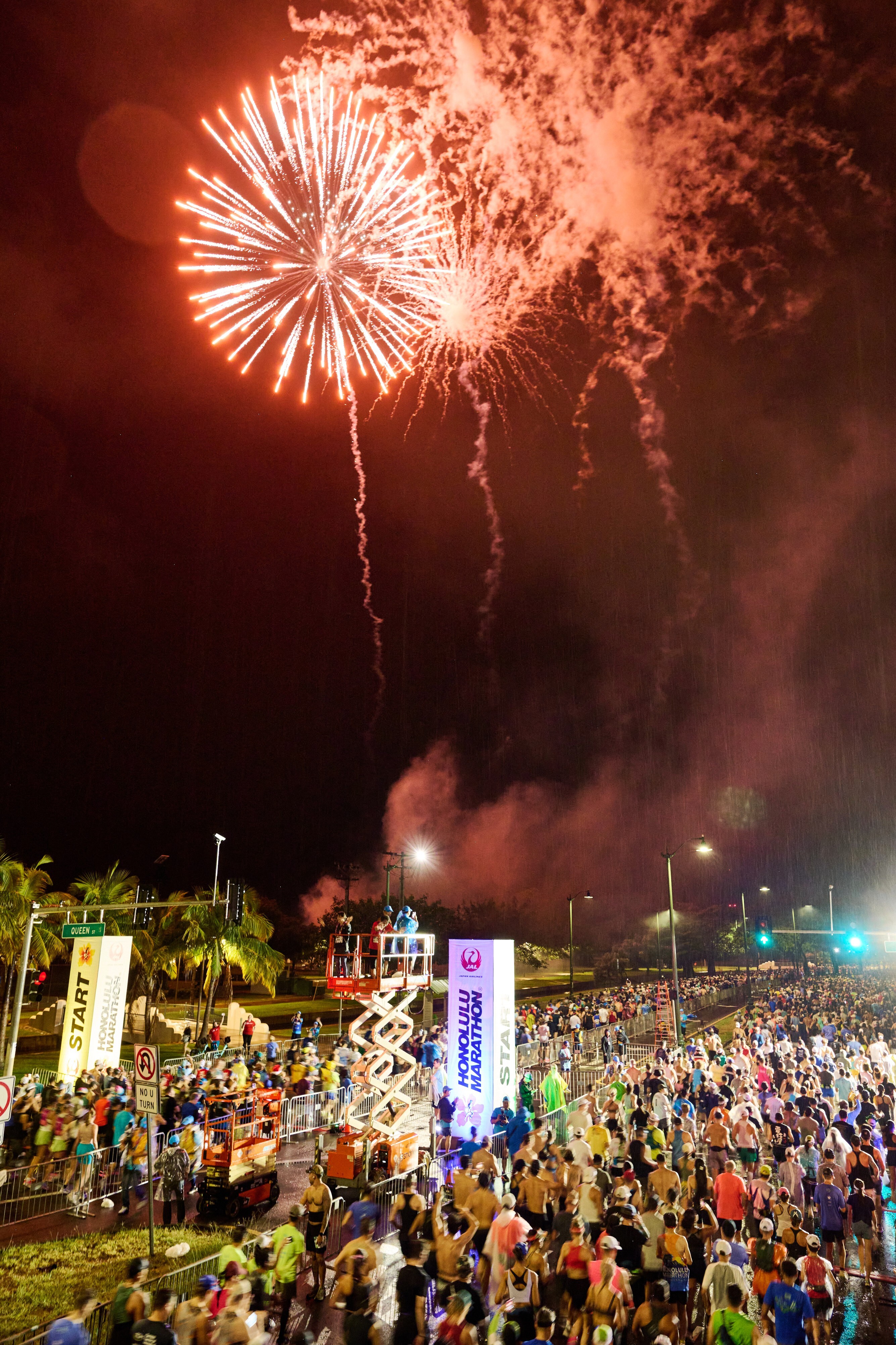 レース当日は、夜明け前のスタートを彩る華やかな花火を合図に幕を開け、ダウンタウンではクリスマスシーズンならではのイルミネーションがランナーを迎えます。コースは、ワイキキビーチや太平洋を望むダイヤモンドヘッド、高級住宅街、そしてカピオラニ公園でのフィニッシュまで、ホノルルの魅力を存分に体感できるルートとなっており、何度参加しても新鮮な感動を味わえる大会です。