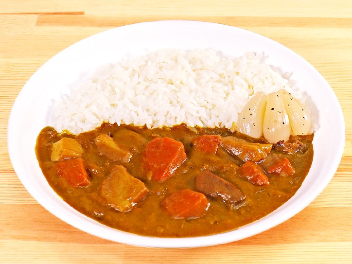 「カレーのための華麗なる岩下のらっきょう」は、一般的ならっきょう漬けよりも甘さは控えめ、すっきりとした酸味がカレーのうま味・甘味を切ってくれます。スパイスに漬け込んでいることから、煮込んで飛んでしまったカレーのスパイス香を補い、レトルトカレー特有のこもったにおいも緩和してくれます。食後に気になってしまうタマネギのような口残りするにおいが少ないです。やや小ぶりらっきょうは歯切れよく、シャリシャリしたらっきょう特有の咀嚼性が癖になり、食を進めます。