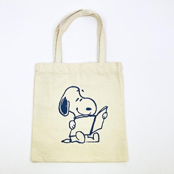 お次にご紹介するのは、「スヌーピー 刺繍ミニトートバッグ アイボリー ランチ SNOOPY」。サイズ:25cm×24cm×0.5cm。シンプルなアイボリーカラーのスヌーピーバッグで、とってもお洒落。