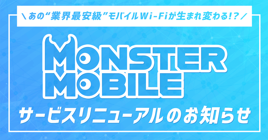 あの“業界最安級”モバイルWi-Fiが生まれ変わる!? 「MONSTER MOBILE」サービスリニューアルのお知らせ