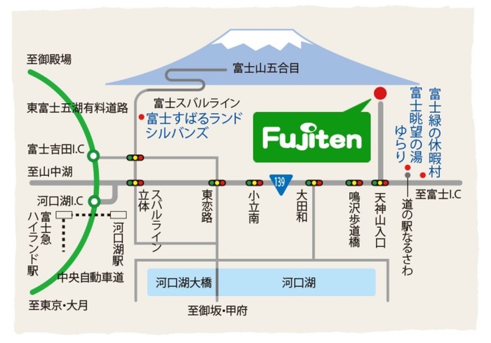 <アクセス>新宿・横浜・静岡から、車で約90分。河口湖ICより約15分。