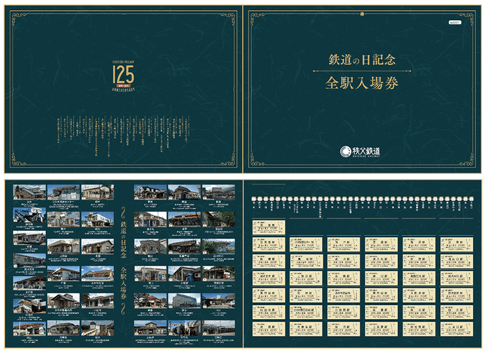 三峰口駅から羽生駅までの準常備型の乗車券1枚と、特製台紙には、明治から令和にかけて創立125周年に至るまでの主な秩父鉄道の変遷、歴代の主な車両の写真を紹介しています。