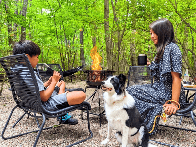 「グランピングカフェ&BBQ“たき火”」は、究極のアウトドア型ドッグカフェを目指し、敷地内に広々としたドッグランを完備し、愛犬がのびのびと走り回れる環境を整えました。お店の利用者には、無料で利用できる広々としたドッグランを提供しています。