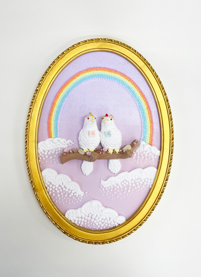 樹脂を用いて様々なものにお菓子のデコレーションをする現代美術作家、渡辺おさむ氏によるスイーツデコアートの展覧会を開催。今回は旧約聖書に登場する有名な物語「ノアの方舟」をテーマに、物語に登場する動物、鳩、虹をモチーフに作品を制作。会場はさながらノアの方舟のような空間に。ノアの方舟の物語の中で、世界を覆い尽くす大洪水のように、非情なウイルスが世界に蔓延する現代における“助け舟”のイメージを、フェイクのスイーツやクリームに託し、新作を含む約40点を展示する。