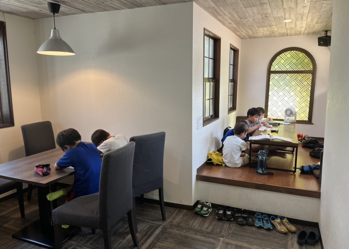 7月28日の開催では、小学1年生から4年生までの9人の子どもが参加しました。集中して自主的に机に向かう子どももいれば、途中で集中が途切れてしまう子どもも。でも、周りを見渡して他の子たちが頑張っている姿に刺激を受けて、再び机に向かっていました。
