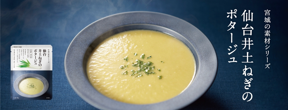 「仙台井土ねぎ」の甘みを最大限に生かしながら、じゃがいもでとろみをつけたクリーミーなポタージュです。