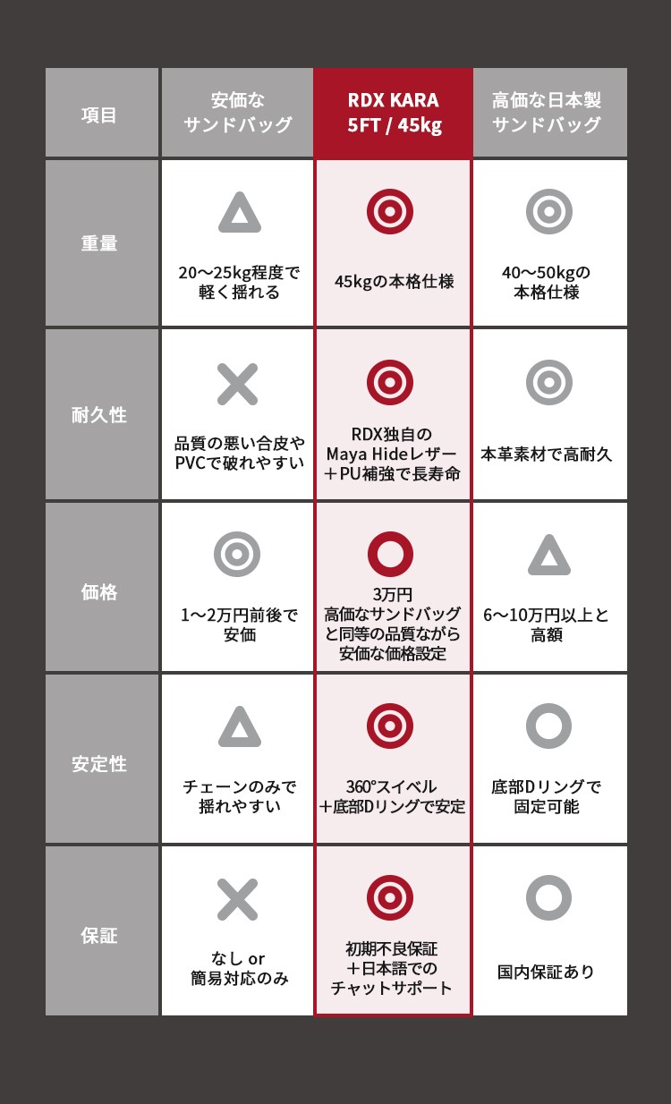 1.重量を25kg → 45kgへ増量し、圧倒的な安定性を実現。強打の反復練習でも揺れが少なく、実戦に近い打撃練習が可能に。