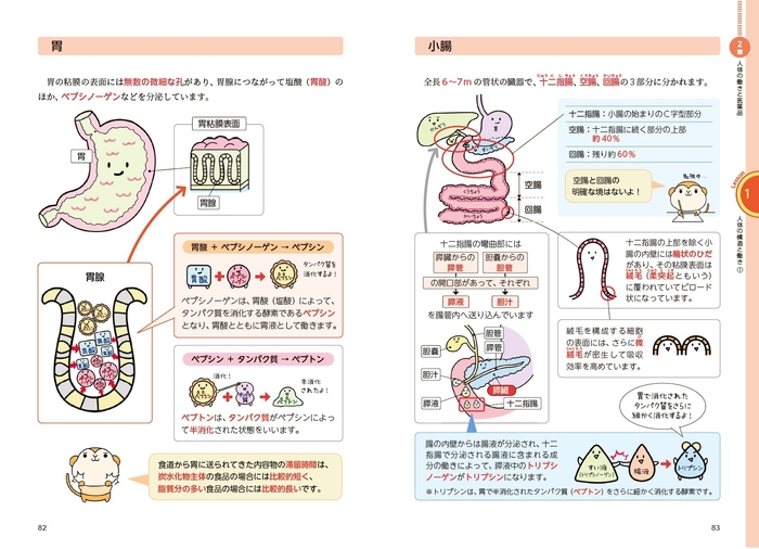 全てのレッスン項目がフルカラーの「マンガ1コマナビ」による「イメージ学習」からはじまるため、「どんな学習をするのか」という点が感覚的につかめるようになっています。また、聞きなれない専門用語や暗記が必要な部分についても、イラストや図表、キャラクターを使ったポイント解説などで、リズムよく学習を進められるようになっています。