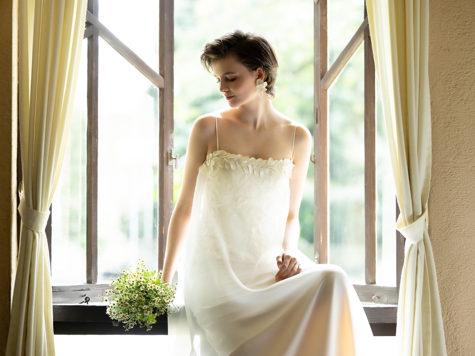 初恋から結婚に至るまでの心の移り変わりや笑顔の変化をドレスで表現