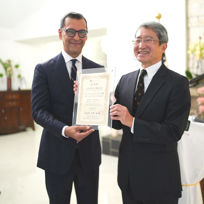 マイアミで、和食店3軒を経営しているアルバロ・ペレス・ミランダ(Japan Authentic Food Systems LLC/米国フロリダ州のCEO)は、2023年2月28日農林水産省より海外で日本食文化の知識と普及を促進する専門家の活動を称える「日本食普及の特別親善大使」として任命されました。