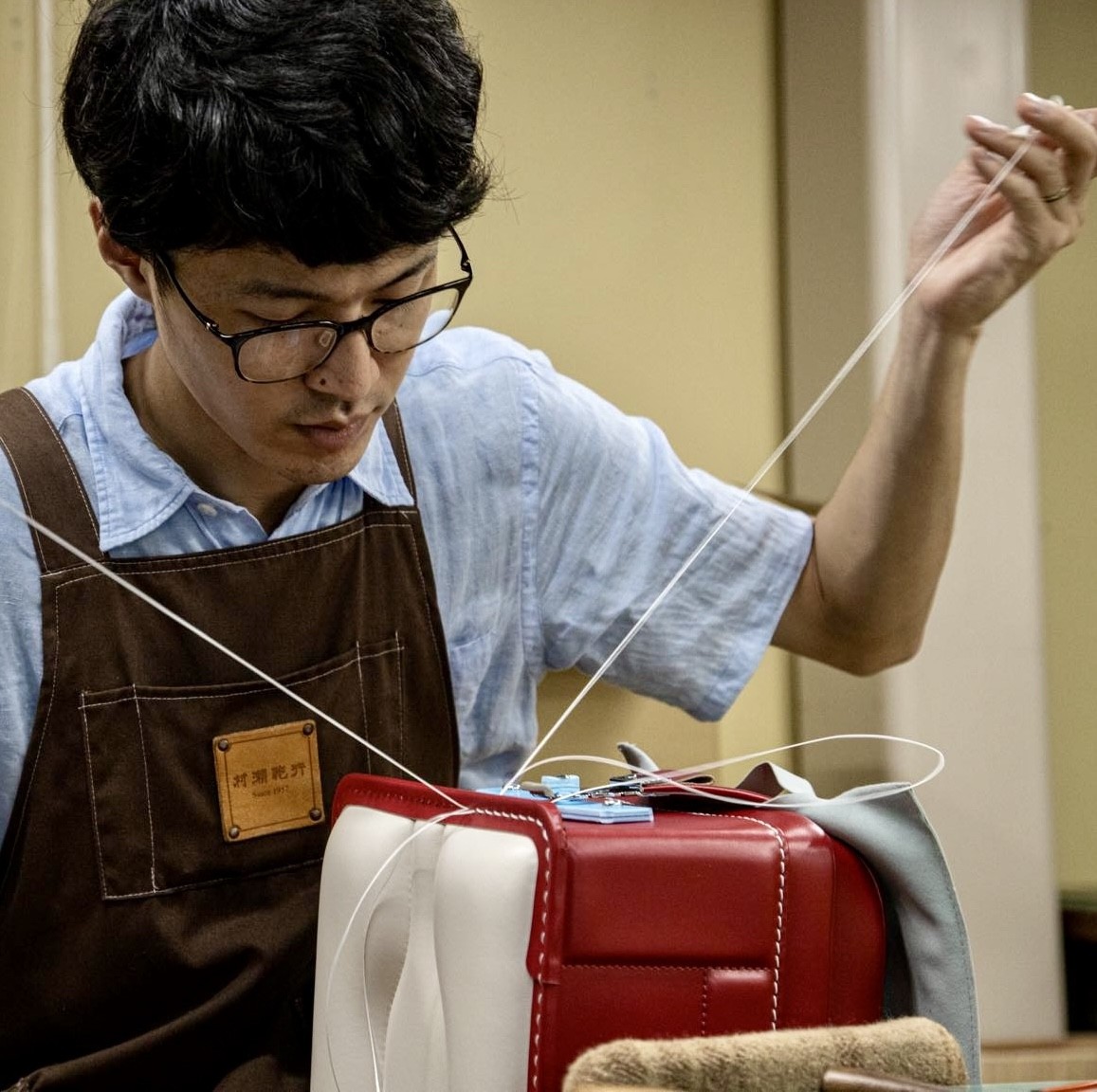 - 職人による手縫い実演(ランドセル職人パパ)