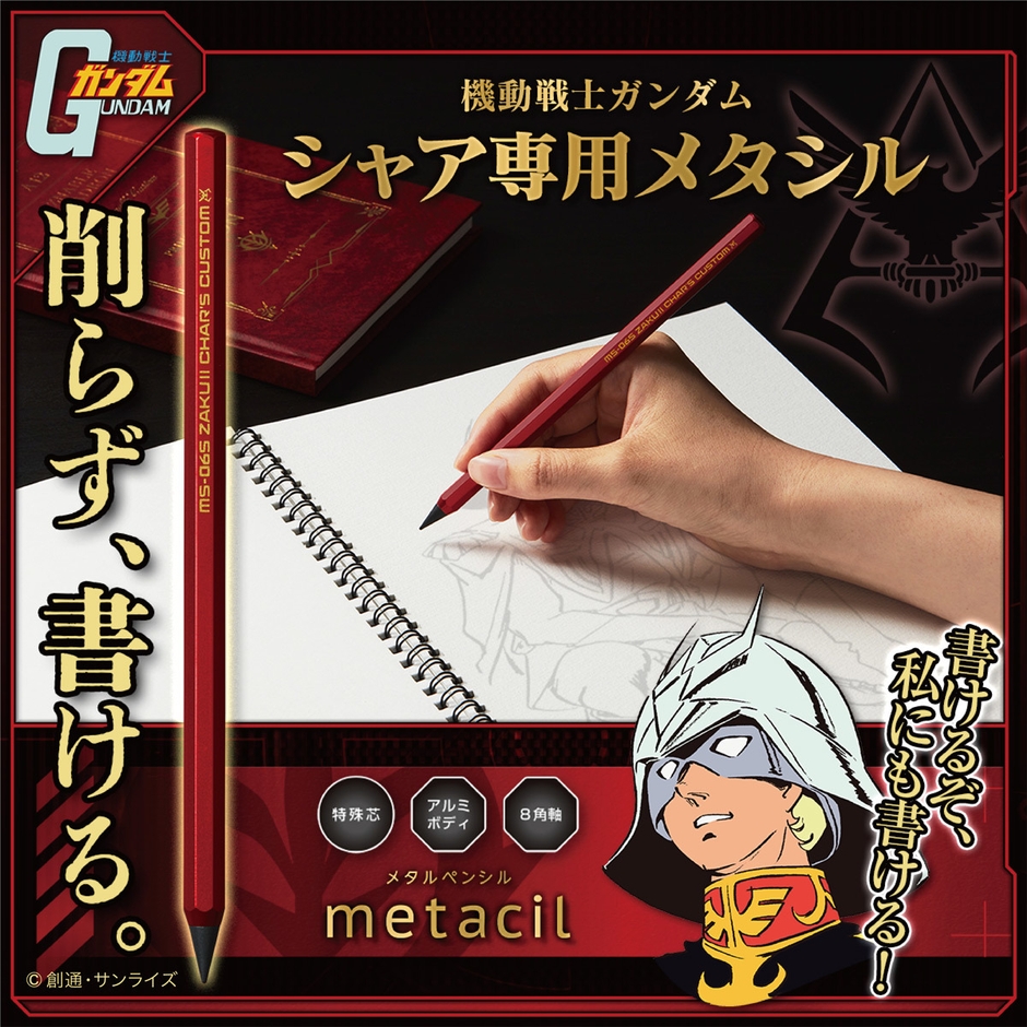 サンスター文具より「シャア専用メタシル」が登場!アニメ『機動戦士ガンダム』に登場する“シャア・アズナブル”をモチーフにした特別仕様のメタルペンシル(メタシル)です。