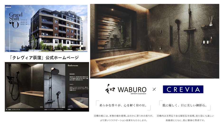 日本で有数の和モダン高級「石貼り浴槽」メーカーの株式会社アステック(本社:東京都港区白金、代表取締役社長:内山 雅揮)による和モダン石貼り浴槽のある浴室「和 WABURO」が、総合不動産デベロッパー伊藤忠都市開発株式会社(本社:東京都港区、代表取締役社長:松 典男)による、2024年完成予定の新築分譲マンション「クレヴィア荻窪」(総戸数49邸)内、3LDKプレミアムプラン3邸に採用されました。