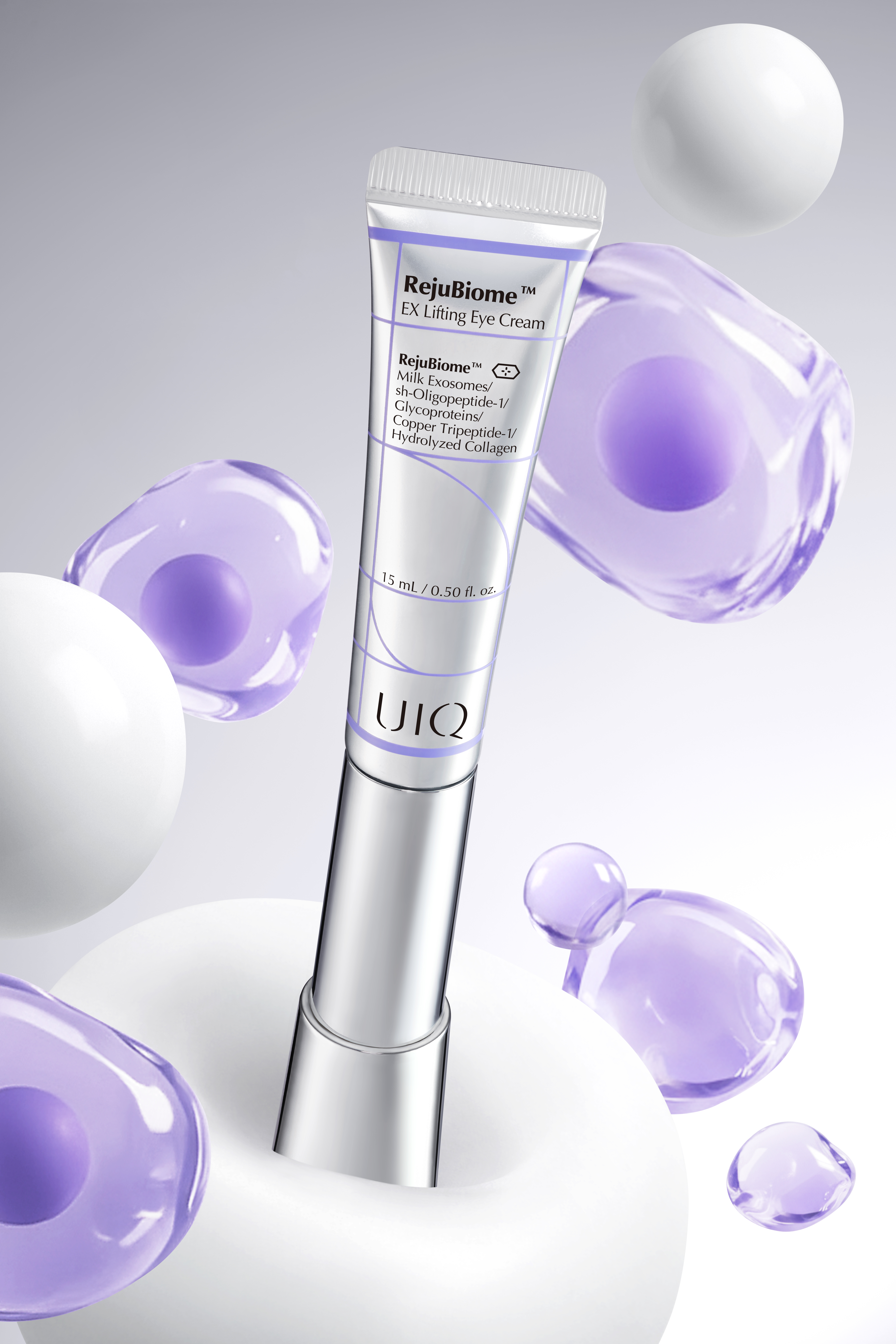 超低温環境下で誕生したアンチエイジング因子を含む高機能リフティングアンプル。アンチエイジングマイクロバイオーム因子 RejuBiome™ 10%、ミルクエクソソーム 2%(グライコプロテイン)、EGF、グライコプロテイン(糖タンパク質)、カッパーペプチドを配合し、肌老化因子の抑制とマイクロバイオームバランスの改善にアプローチします。表面・内側・密度からハリを強化し、中顔面や口元、ほうれい線などの気になるシワまで働きかけ、引き締まった弾力肌へ導きます。濃密な栄養感を保ちながらも肌に均一に密着し、なめらかな塗り心地で効果的なリフティング&弾力ケアを実現いたします。