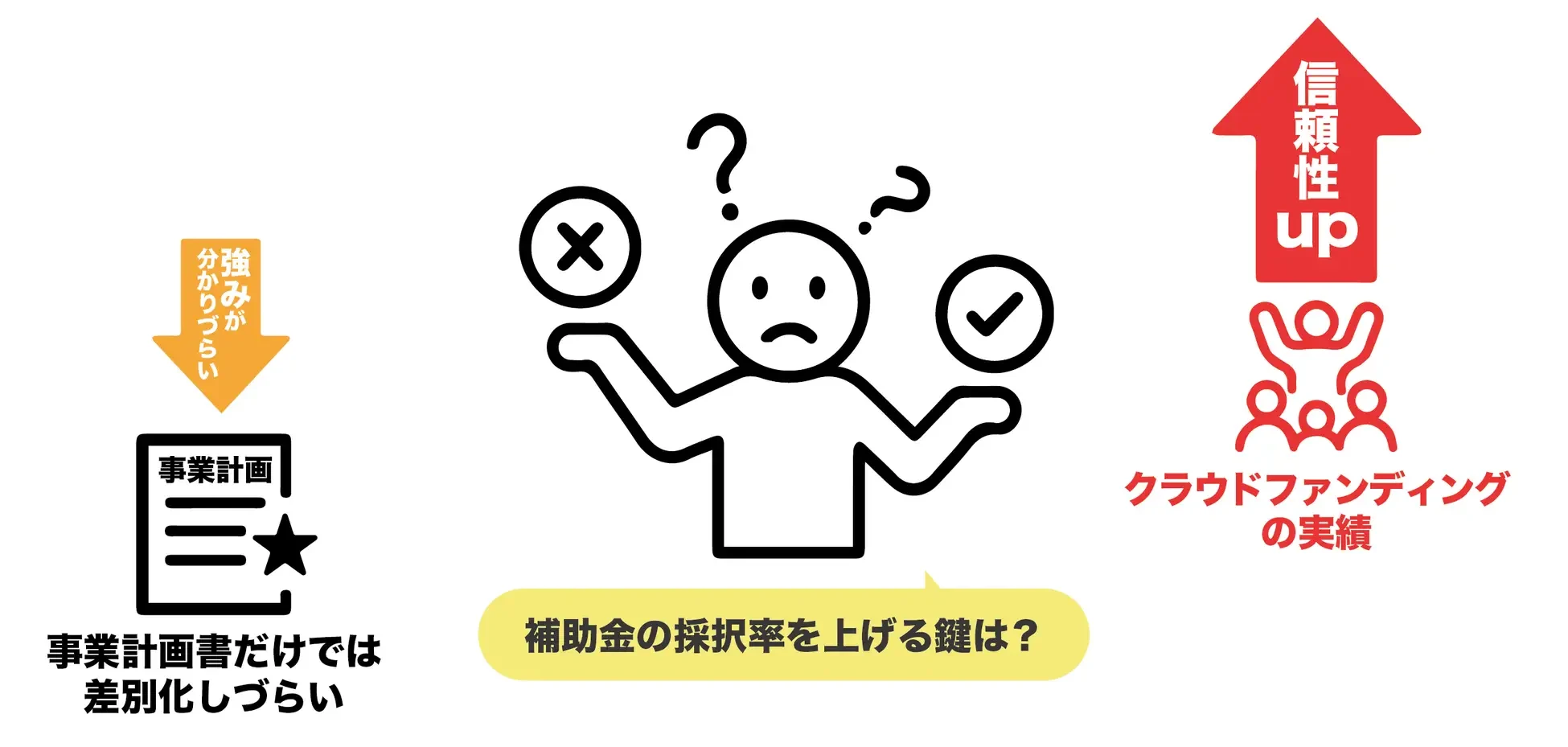 2つ目は、クラウドファンディングの実績が補助金の採択率を高める点です。補助金は必ず採択されるわけではなく、事業計画の具体性や信頼性が評価されます。クラウドファンディングで支援金が集まったという事実は、市場からの支持を示す強力な証拠となり、審査で有利に働きます。