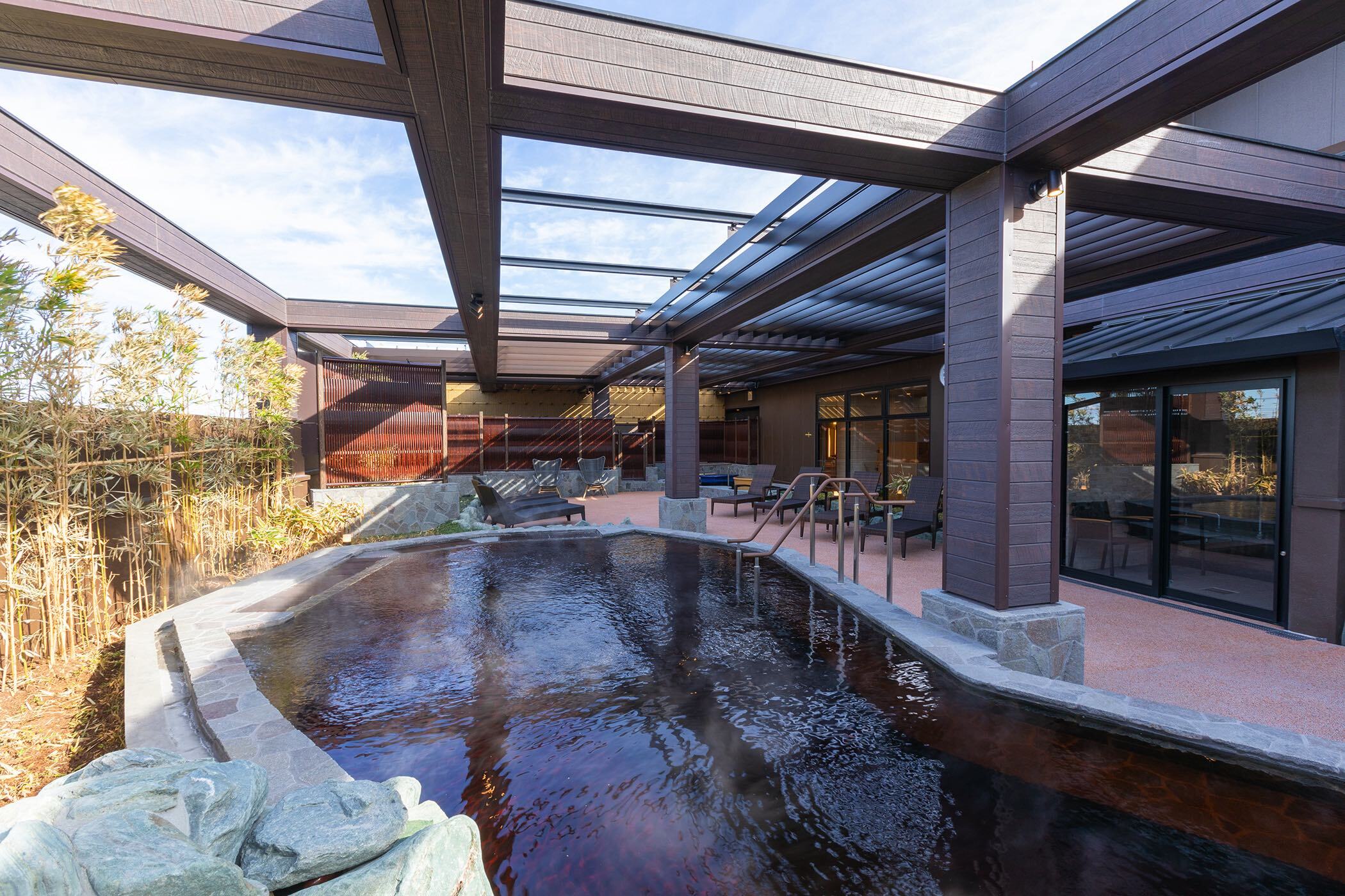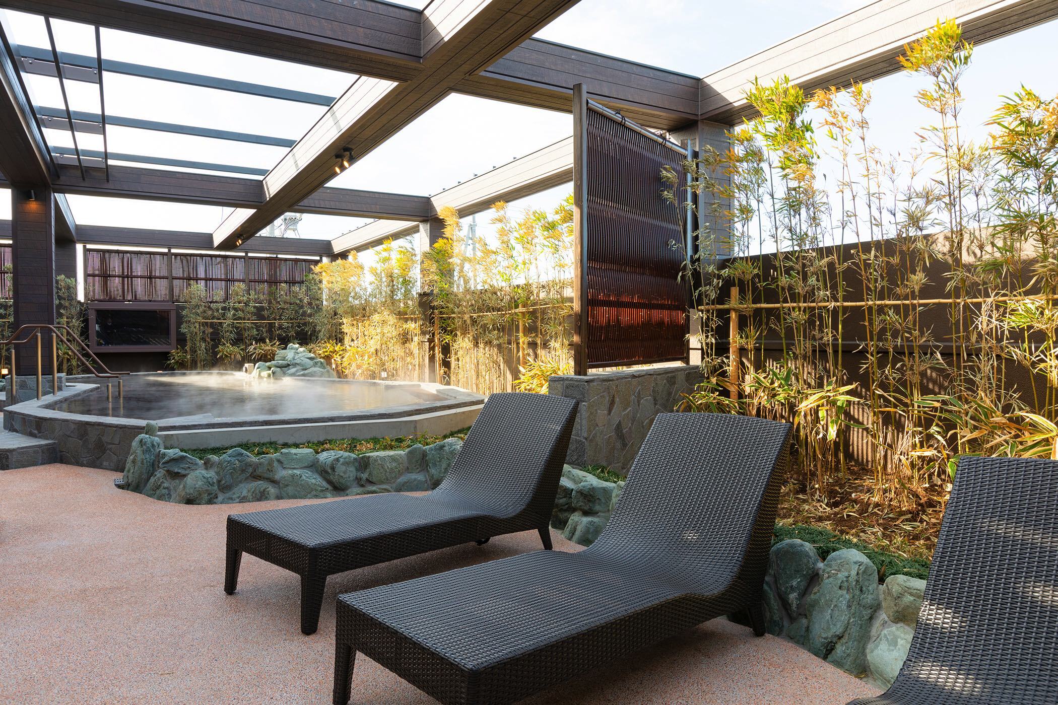 地下から湧き出る天然温泉を使用し、日常では味わえない“非日常の癒し”を提供。旅の疲れをじっくりと癒せる空間として、多くのお客様にご利用いただいています。