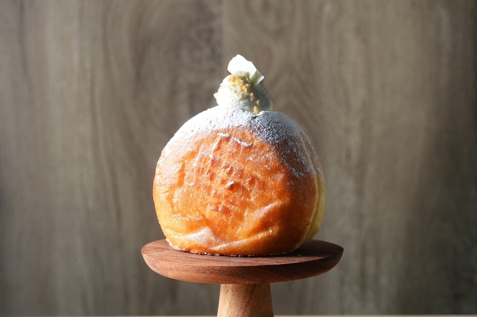 通常メニューではサッポロファクトリー店だけしか買えない「塩バニラ」380円は、北海道産の生クリームに有機栽培し、厳選された2種類のバニラビーンズをブレンド。香り豊かでバニラが濃厚な生ドーナッツです。