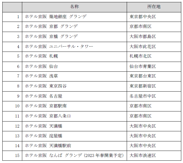(3)対象ホテル: ホテル京阪チェーン全店