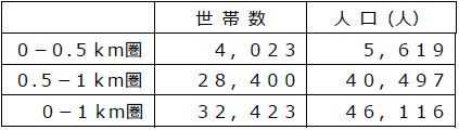 ・店舗から1㎞圏内には単身世帯が74.0%、2人世帯は15.9%と少人数世帯が9割近くを占めます。