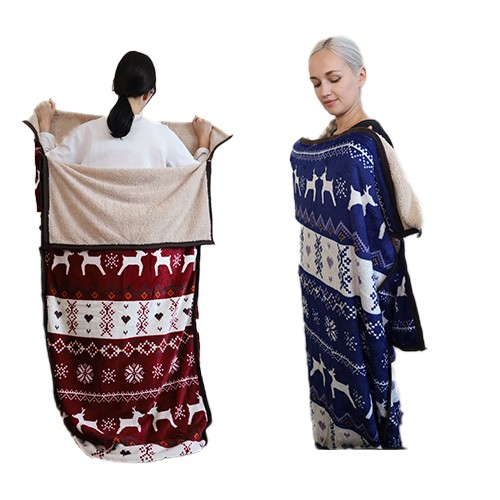 外側はフランネル毛布地、内側はもこもこ毛布地になっており寝袋タイプで冷たい空気をシャットアウトして全身を暖かく包みます。