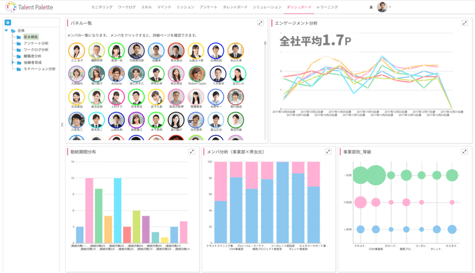 社員のモチベーションや不満意見、組織の分析結果を ダッシュボードでリアルタイムに把握が可能に