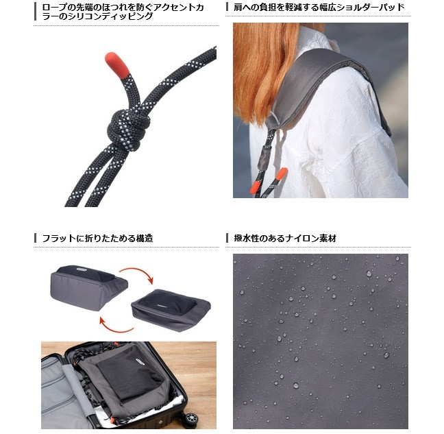 ロープ状のショルダーストラップと、ビビッドなアクセントカラーを散りばめた遊び心あふれるデザインが魅力。タウンユースはもちろん、キャンプやフェスなどアクティブなレジャーシーンにもぴったりです。
