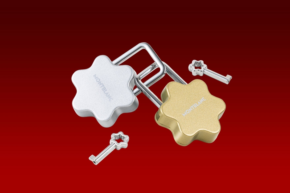 モンブランのエンブレムをおふたりの固い絆を象徴するシルバーとゴールドのキーロックとして表現しています。