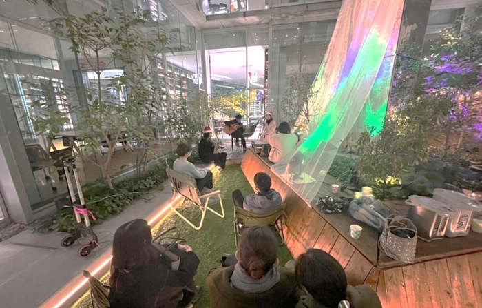 今回実施するイベント「Book & Bookish everyday」では、アカデミックシアター内の空間や中庭を使って、学生が「Bookish(本好き)」になれる空間デザインをデザイン・施工し、コーヒー販売やDJイベント、ワークショップなどを行います。また、アカデミックシアター内の様々な場所にフットレストユニットを設置してくつろげる空間を創出します。さらに、モノづくり施設「THE GARAGE(ザ・ガレージ)」を活用して、ブックスタンドやしおりなどの制作ワークショップも行います。利用者が少ない朝の時間帯にイベントを実施することで、大学施設の利用促進に繋げるとともに、コロナ禍の影響で減ってしまったコミュニケーションの活発化を促します。
