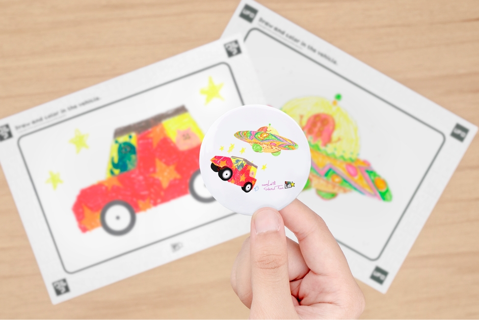 また、「お絵かきタウン」で描いた絵のオリジナル缶バッジをその場で作る「缶バッジファクトリー」を開催します。開館時間中、どなたでも参加が可能です。