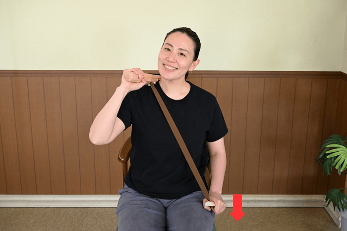 下の持ち手をベルトがピンと張る程度に握ったまま、