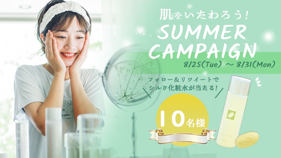 絹生活研究所サマーキャンペーン第2弾! Twitterフォロー&リツイートでシルク化粧水を10名様に! 8月31日まで