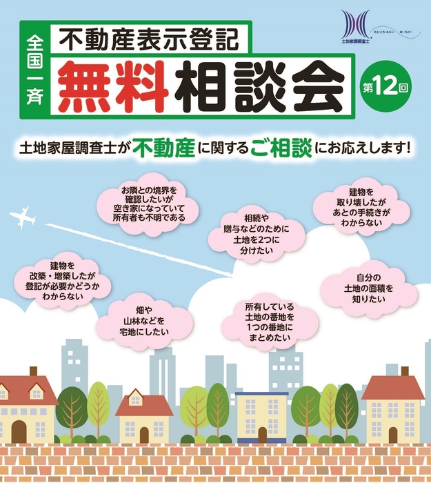 全国の土地家屋調査士会※では、7月31日の土地家屋調査士の日を中心に「第12回全国一斉不動産表示登記無料相談会」を開催いたします。