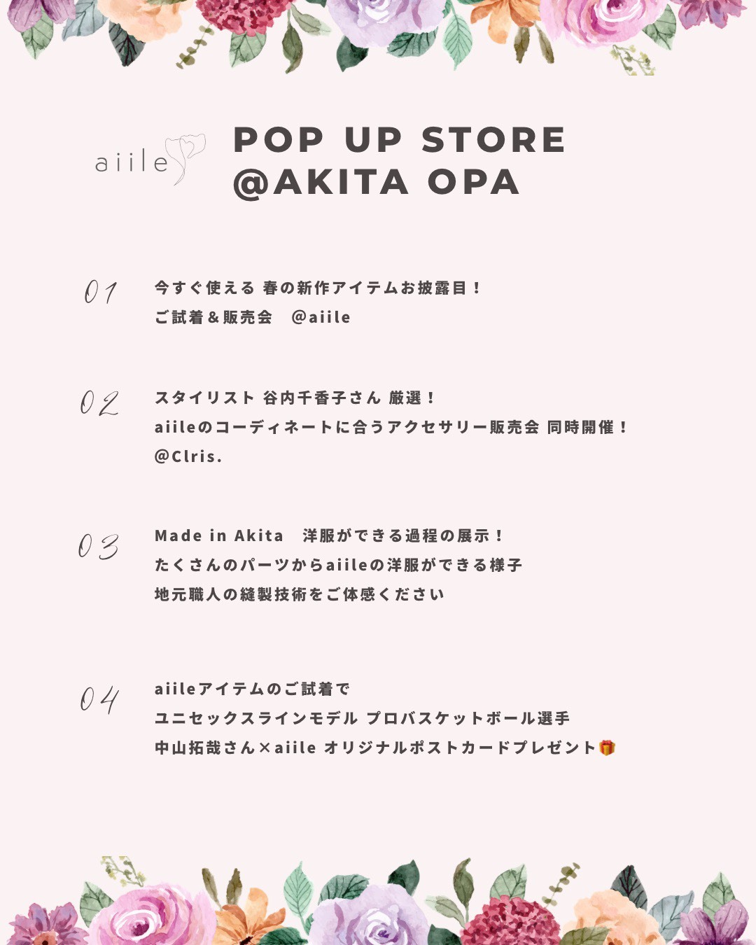 秋田発「aiile」秋田OPAで春の新作POPUP