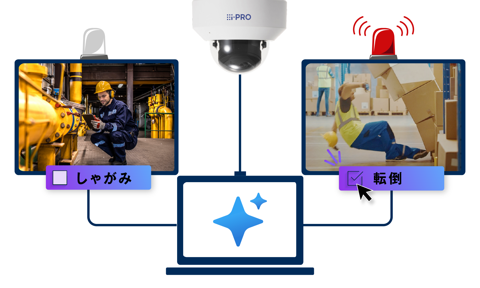 i-PRO株式会社製品のAIカメラ上で直接動作し、サーバー不要な転倒検知アプリ「転倒検知アプリ for i-PRO」は2025年の提供開始以来、様々な業種の企業にご利用いただいております。主に作業現場が抱える課題を解決するソリューションとして導入されていましたが、検知対象を転倒以外も検知したい、転倒に似た姿勢による検知を除外したいなど、幅広い状況に対応できる検知機能が求められていました。