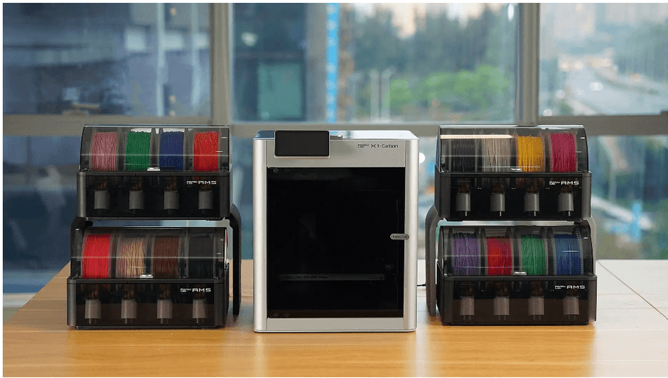 今までの3Dプリンタは複数の色で造形することが稀であり、しかも煩雑でありますが、Bambu Labが独自の多色自動素材システム(AMS)を開発し、一台のプリンタで最大16色の造形を可能にしました。これにより今まで形でしか見えなかった3Dプリンティングが色での表現も可能になりました。